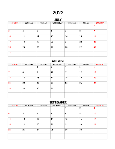 Calendar For July August September 2022 Free Calendar Su
