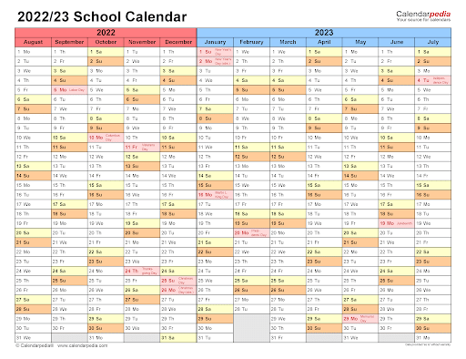 Academic Calendars 2022 2023 Free Printable Word Templates