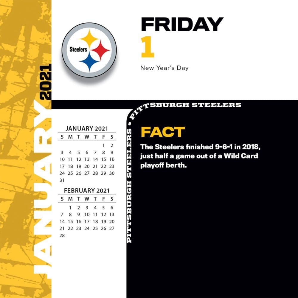 FREE Shipping on orders over 25 shipped by Amazon. January 9 2022 Sunday. NFL Pittsburgh Steelers 2022 Desk Calendar - FREE Shipping on Qualifying Orders.