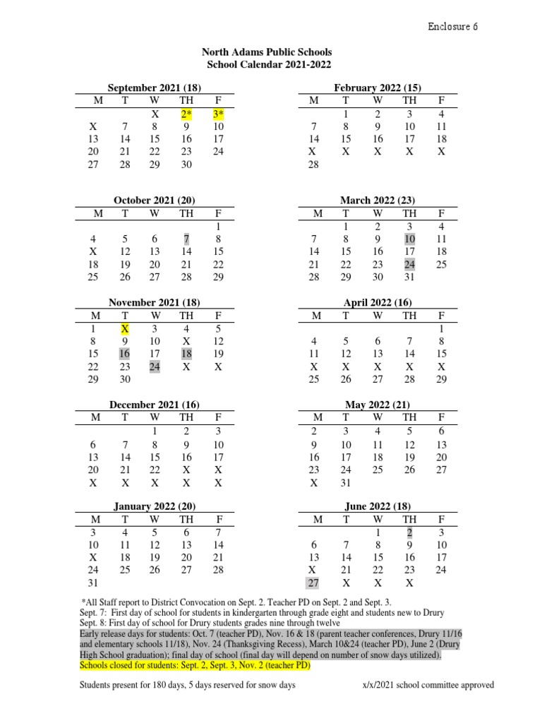 North Adams School Calendar 2021 22 Holidays Public Holiday