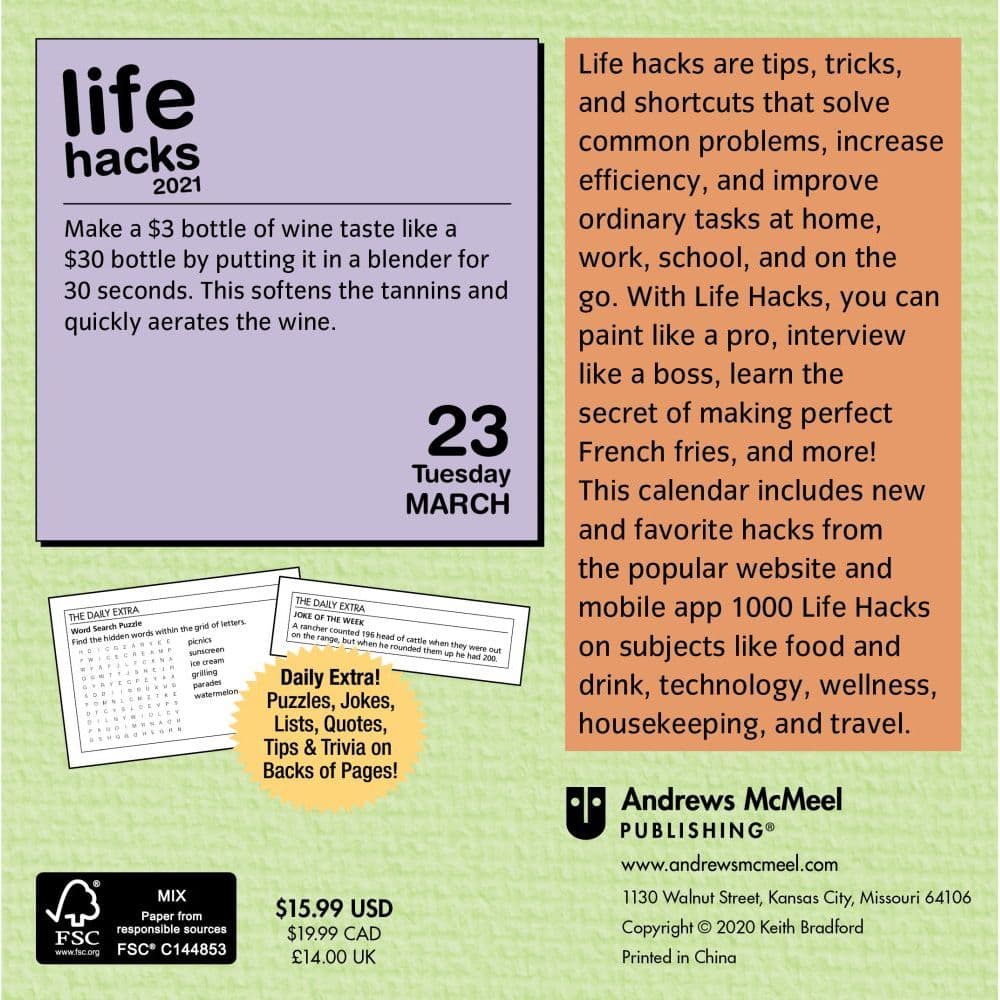 Life Hacks 2022 Day To Day Calendar Tips Tricks And Daily Diys To Make Your Life A Little More Awesome Bradford Keith 1000lifehacks Com 9781524863708 Amazon Com Books