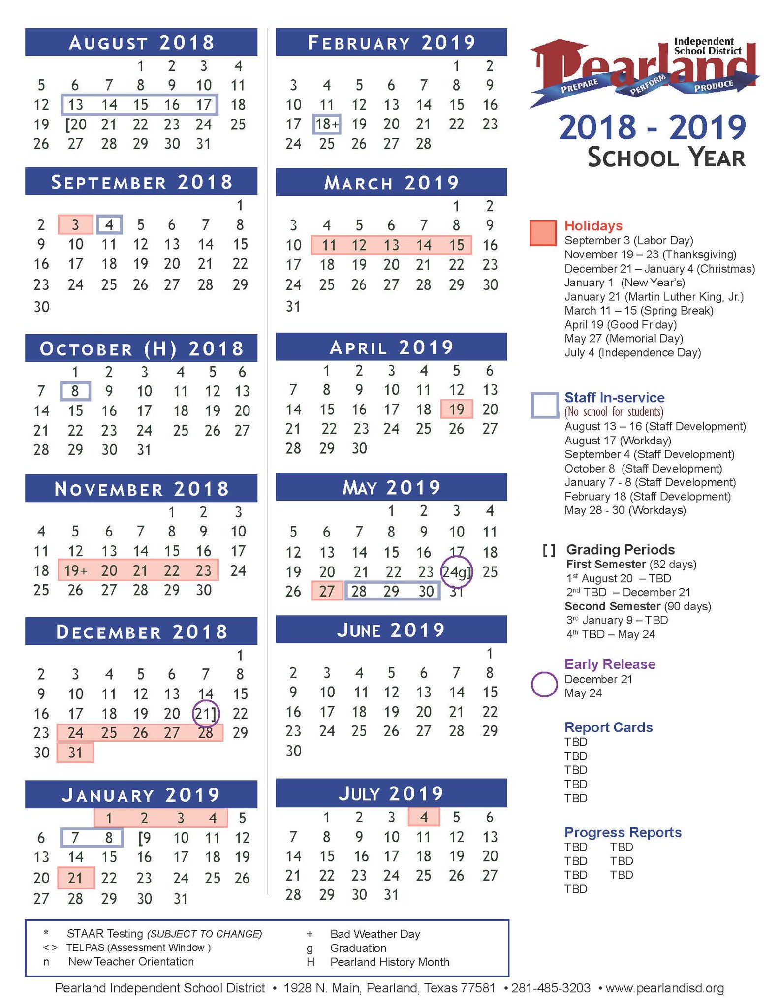 Pearland Isd On Twitter The Board Of Trustees Approved The 2018 19 District Calendar View It Online Https T Co Ujoanu5rar